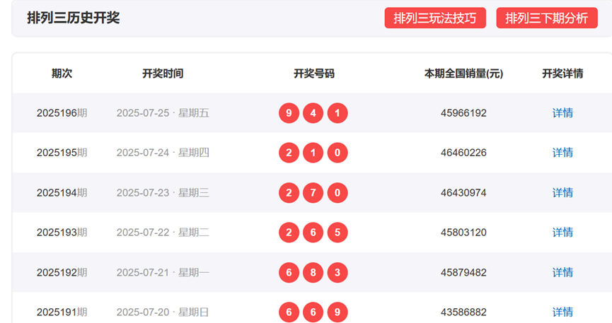 体彩排列3上一期,开奖号码为941,形态为组六 ,奇偶比为2:1,012路数值表现为011,和值14,和尾4,跨度8。
