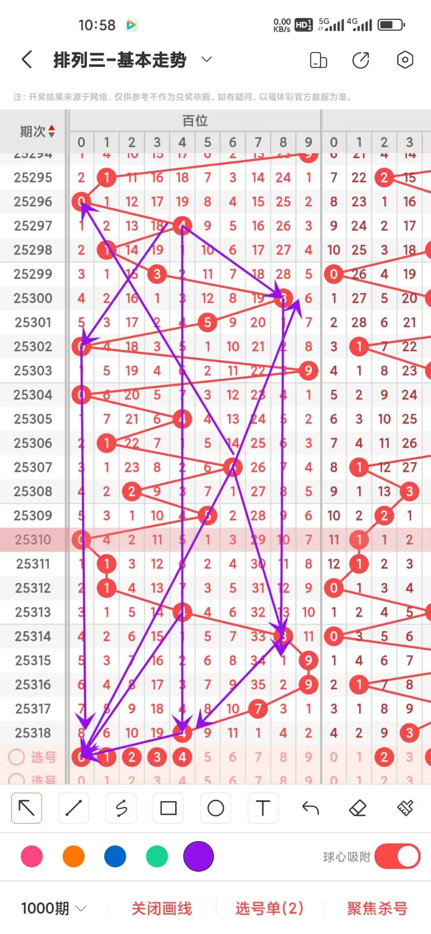 2025319期上期百位开出偶数4,我们通过走势图来看百位上1000期,0-9最大遗漏和最大连出数据,其中0最大遗漏55,1最大遗漏45次,2最大遗漏34,3最大遗漏38次,4最大遗漏34次,5最大遗漏52次,6最大遗漏58次,7最大遗漏是55次,8最大遗漏是35次,9最大遗漏是44次,百位上走势图我们可以看出目前热度比较高147号码,0路号码目前比较冷,今天我们重点关注下2路号码,防奇数继续下号,我们再回过头来看0-9他们最大连出数据,0最高2连,1最高3连,2最高3连,3最高3连,4最高2连,5最高3连,6最高2连,7最高3连,8最高2连,9最高3连,通过上面的走势分析我们可以看出目前百位上走势比较好的1路号码147,小号开始回补起来我们要关注是热号,百位上236号码走势就有点冷淡,我们可以作为防守,今天百位我们重点关注小号5236,具体看下面走势图