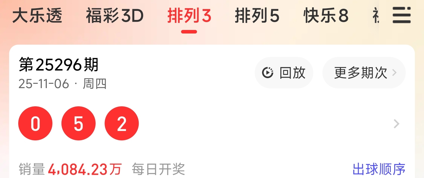 上期开出052,和尾为7,跨度为5,奇偶比为1:2,大小比为1:2012路个数对比为1:0:2
