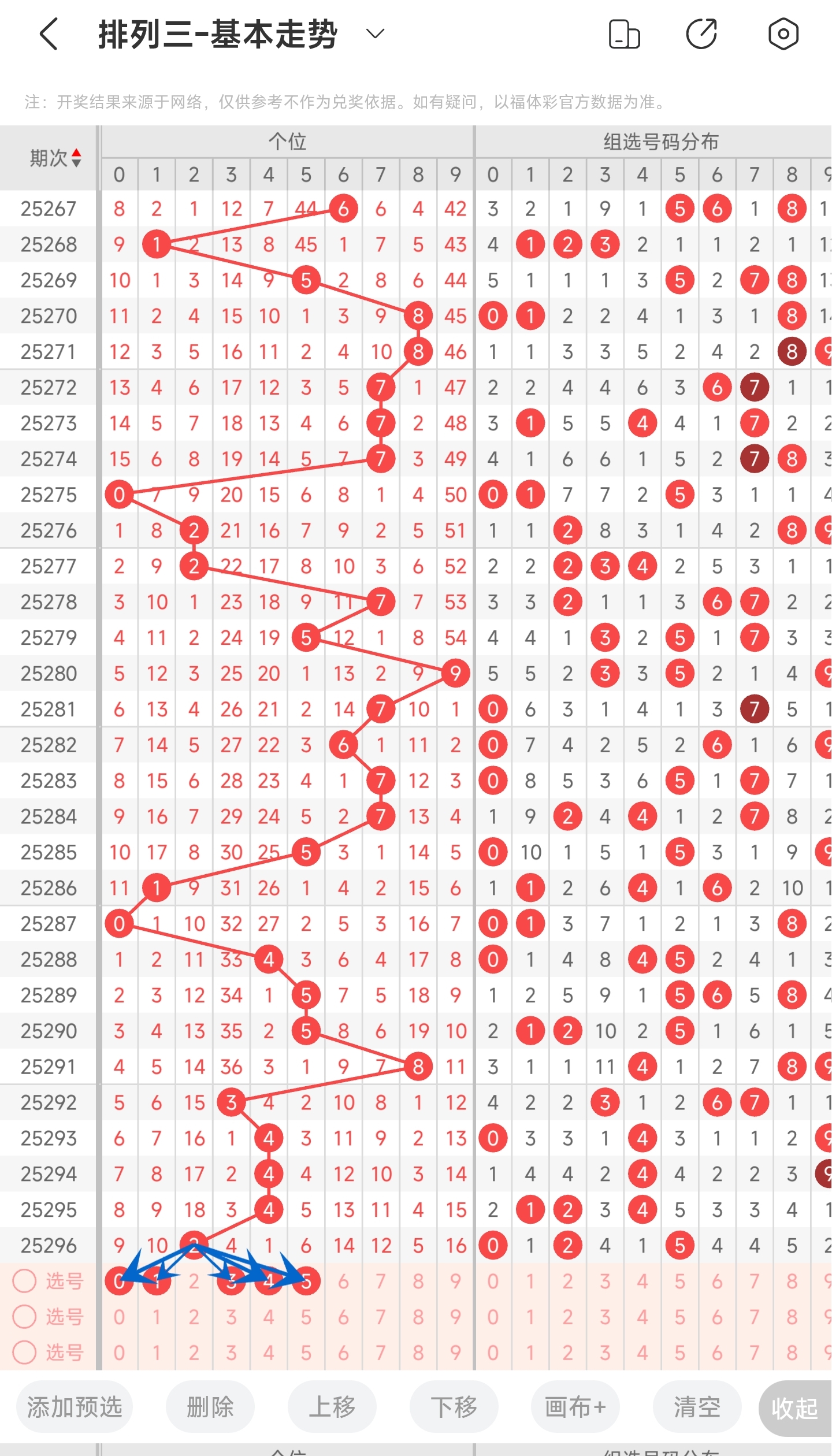 上期开出了0号球。往前一期开出的是1号球。趋势往左移动,偏移了1个点。通过走势图分析,可以看到目前趋势是很明显往右的了。偏移量的话,可以看到上期偏移量是再经过多期大偏移量后突然变小的,本期可能又恢复原来大偏移量的状态,也可能保持小偏移量。所以本期我们小和大偏移量的号码都要关注一下。最后再结合遗漏期数和冷热号,本期我们可以关注13678号球。综上所述本期我们推测可能会开出13678等号码。