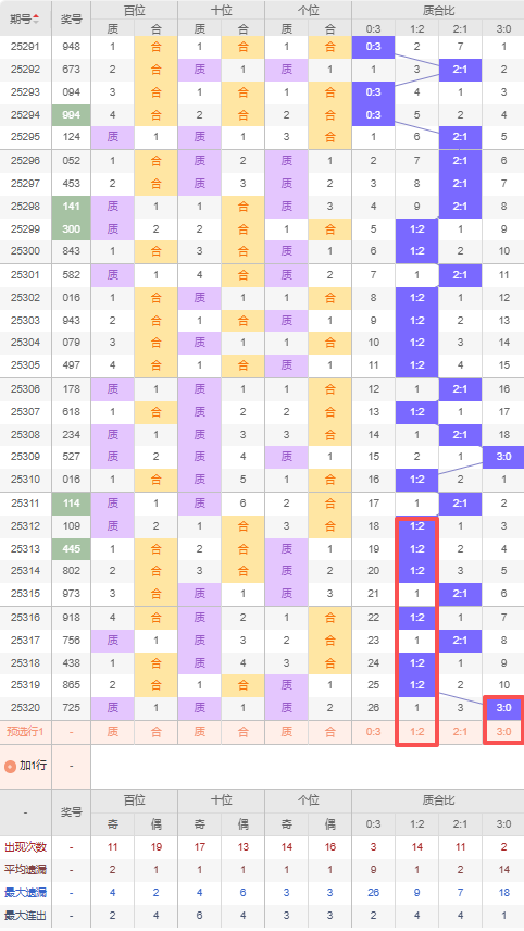 上期质合比:3:0,近10期质合比出现情况:2:1、1:2、1:2、1:2、2:1、1:2、2:1、1:2、1:2、3:0,最近10期出现3期2:1,出现6期1:2,出现0期0:3,出现1期3:0,根据近10期规律本期推荐连出3:0,防隔期出1:2,综上所述质合比推荐:防:1:2,重点关注:3:0。