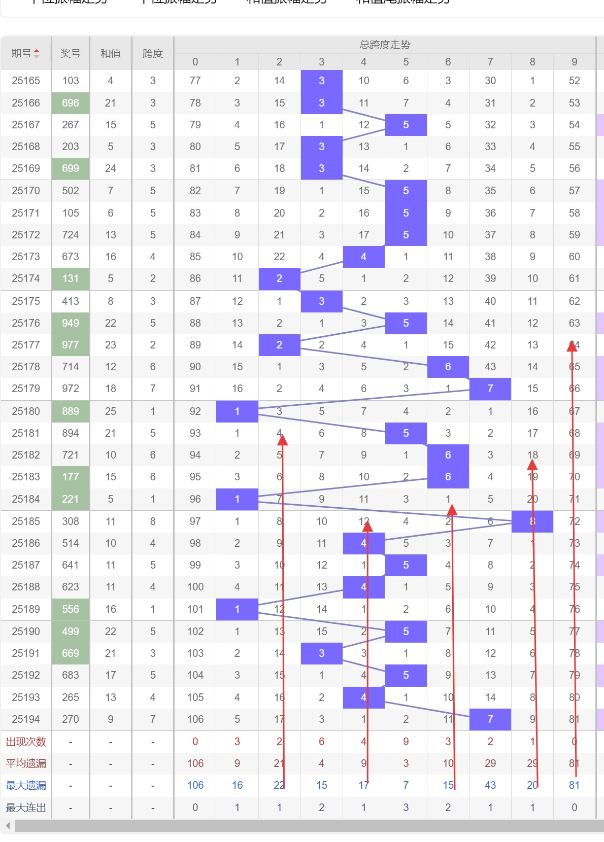 四、排列三195期跨度分析