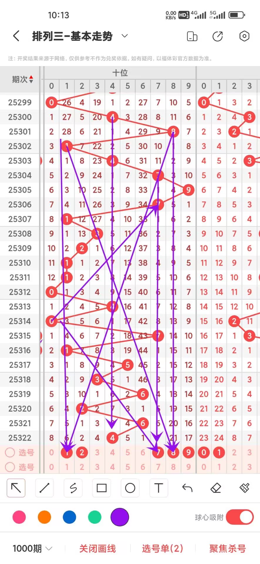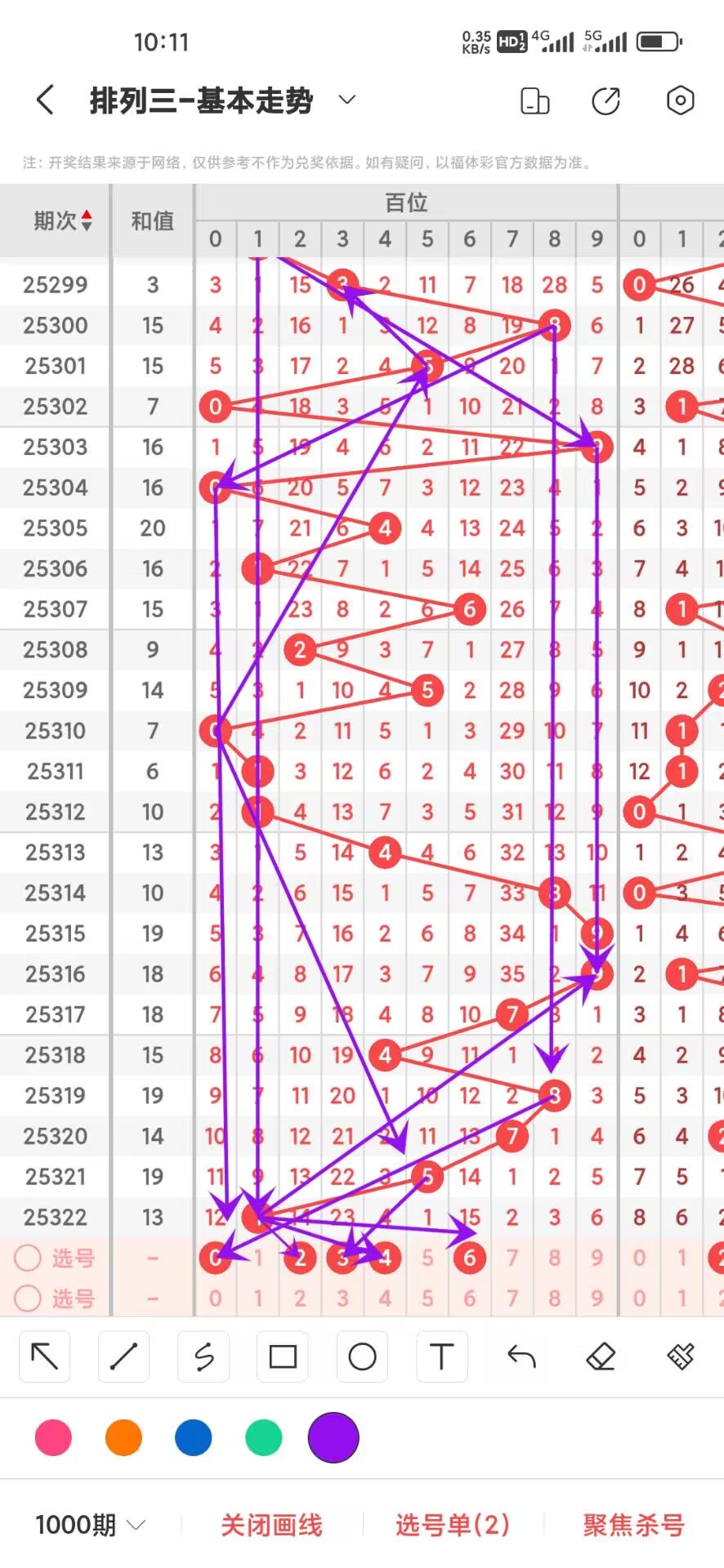 2025323期上期百位开出奇数5,我们通过走势图来看1000期,012路中最大遗漏的数据,0路号码的最大遗漏总数是195次,0369分别在100期内遗漏分别是55,38,58,44,其中0遗漏总数55次最多,我们再来看1路号码最大遗漏总数是134,147号码分别遗漏是,45,34,55,7遗漏次数最多55次,再回过头来看2路号最大遗漏总数是121次,258号码分别遗漏是34,52,35次,这三个数之间5的遗漏最大,在来看百位上奇偶比,目前奇数出现的次数是439次,偶数目前出现561次,目前偶数整体走势比较好,百位目前小号开始回补,今天继续防守冷号和小号,通过上面的走势分析我们可以看出目前百位0145号码走势比较好,0236号码走势就有点冷淡,今天百位我们重点关注012436,具体看下面走势图