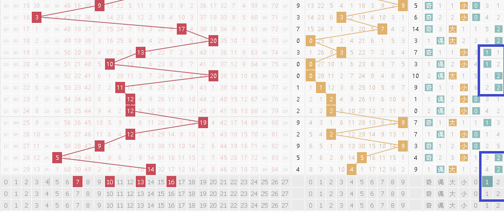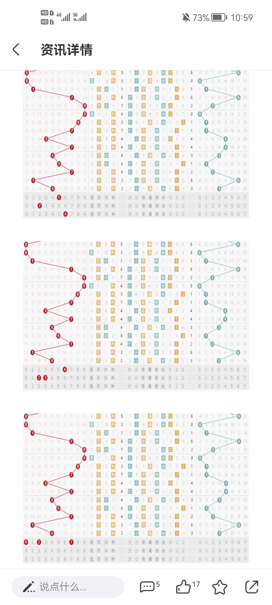 如果跨度依旧遵守对应开出的方式,那么本期当中和值尾1路的号码就特别帮,其中重点考虑号码7,10,13,16。那么这样一来,我们综合个位十位上的精准定位号码就能够将百位上最好的号码统计出来。其中号码012345都想对较好。老规矩如果非要定金码的话,作者推荐1路号码14作为百位上的胆码。