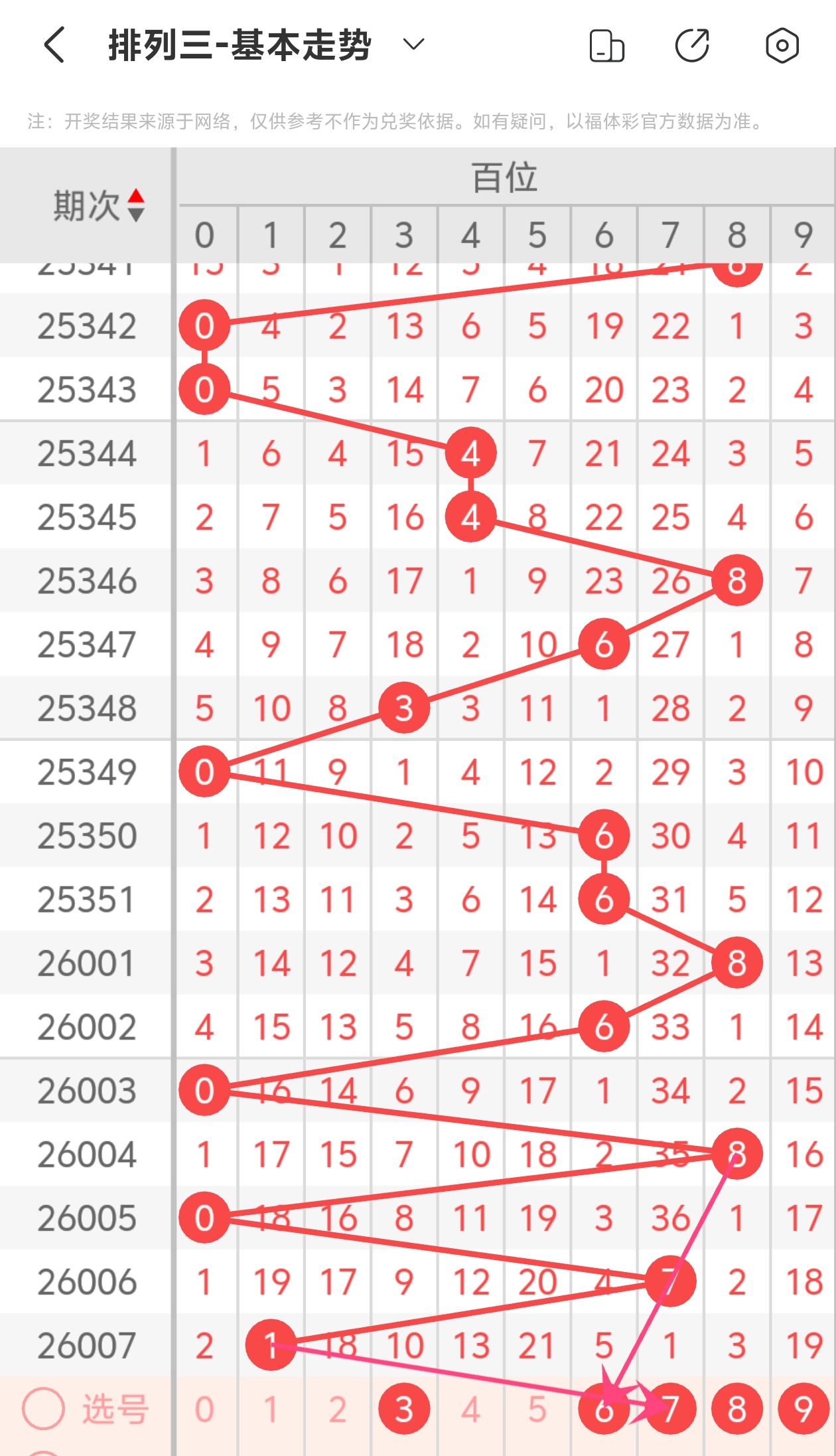 下面是体彩排列3的百位走势图分析