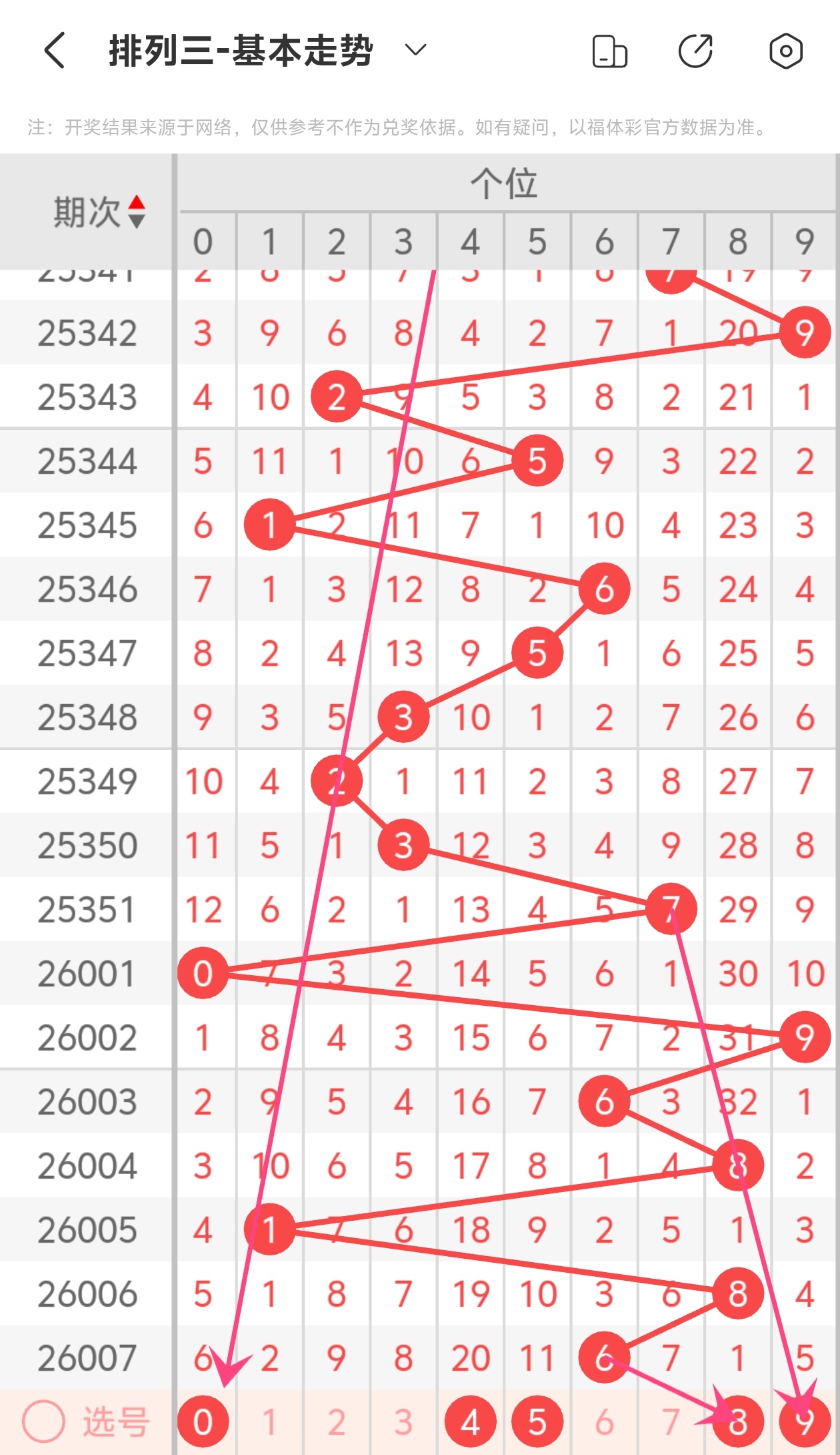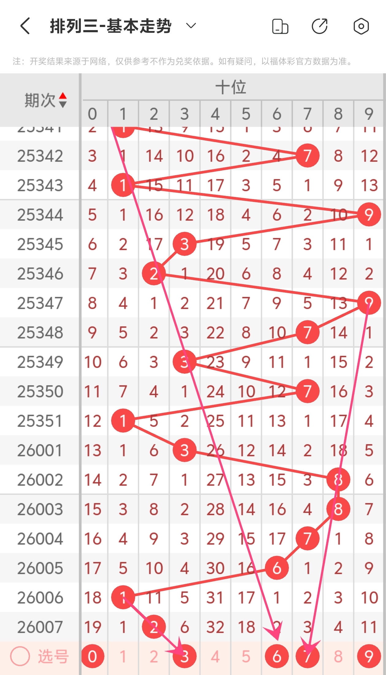 下面是体彩排列3的个位走势图分析