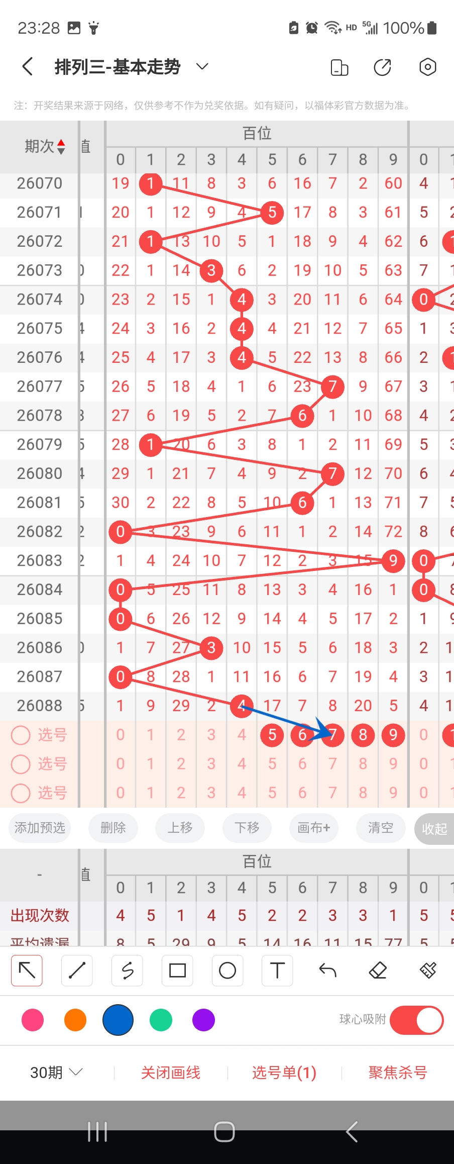 百位走势标注如下图;