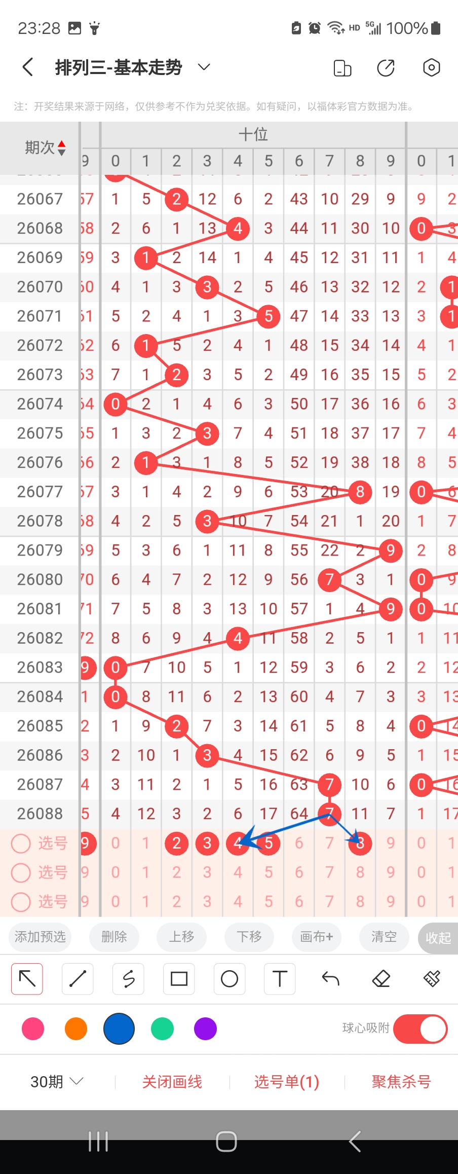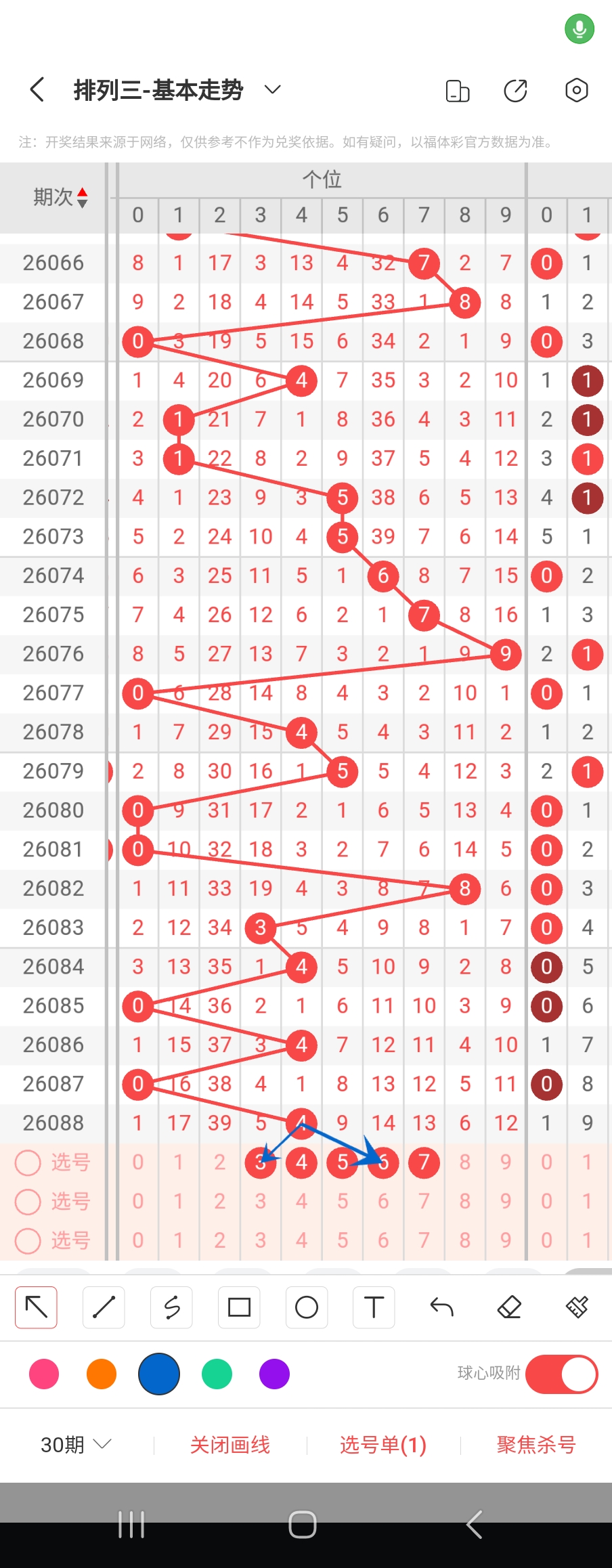 个位走势标注如下图;