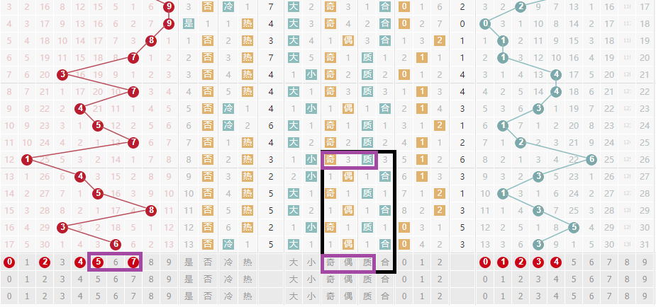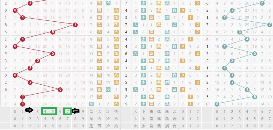 十位走势上上期我们说了必在234跨度当中开出号码,与之对应的也就是号码567,这里是遵循了一个“不过4”的规律,那么在本期当中我们重点跨度就还是234当中选择。但是如果出现对应的36跨度,我们就得选择号码16.如果继续出现234跨度那么号码号码24相当不错。但是这里有一个陷阱就是,奇偶比上不匹配,如果要出现奇质的号码就只剩下了号码57.所以在本期当中号码57是必须要防的号码。