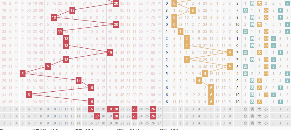 和值和尾当中本期有一个共同点,和值当中出现2路并且和尾出现0的路的走势,综合来说就是其中对应的和值20,23,26.所以在本期当中这三个和值是我们必须要考虑进去的。