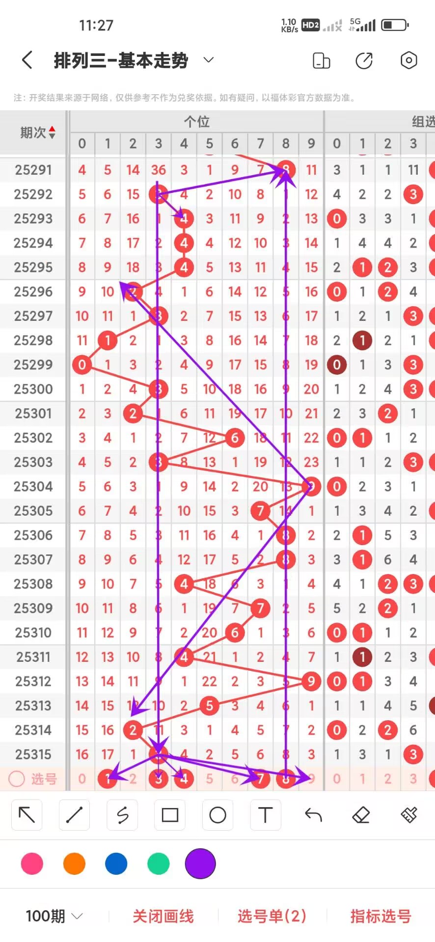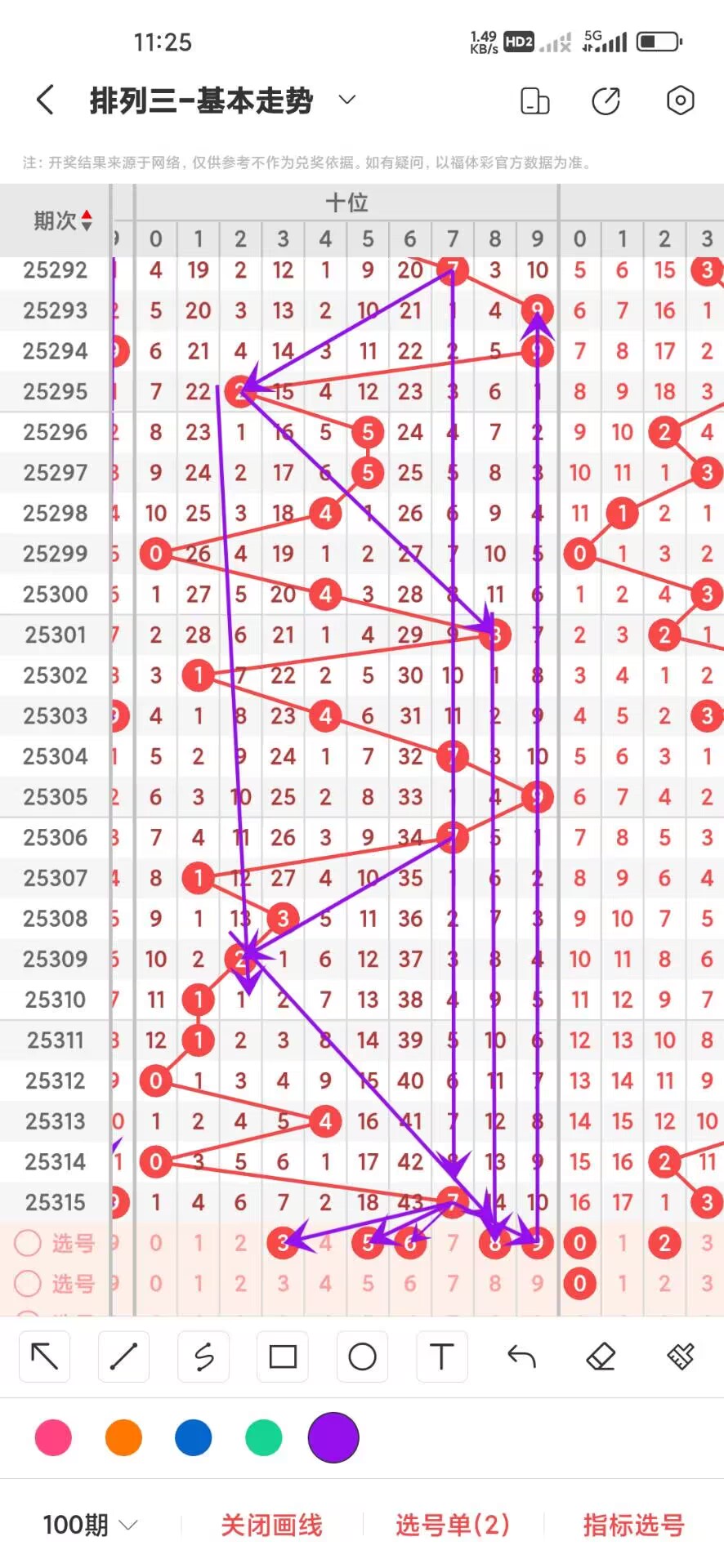 2025316期个位开出奇数3,我们通过走势图来看百位上100期,0-9最大遗漏和最大连出数据,其中0最大遗漏16,1最大遗漏20次,2最大遗漏18,3最大遗漏是36次,4最大遗漏27次,5最大遗漏45次,6最大遗漏26次,7最大遗漏是20次,8最大遗漏是19次,9最大遗漏是54次,其中9的遗漏最大54次,我们再回过头来看0-9他们最大连出数据,0最高1连,1最高2连,2最高2连,3最高2连,4最高3连,5最高2连,6最高1连,7最高3连,8最高2连,9最高1连,通过上面的走势分析我们可以看出目前个位上走势比较好的号码是14,热号是23,01号码走势就有点冷淡,目前小号冷号开始回补,我们可以关注下,今天个位我们重点关注378,特别号码3,具体看下面走势图