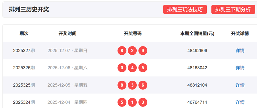 体彩排列3上一期,开奖号码为829,形态为组六,奇偶比为1:2,012路数值表现为220,和值19,和尾9,跨度7。