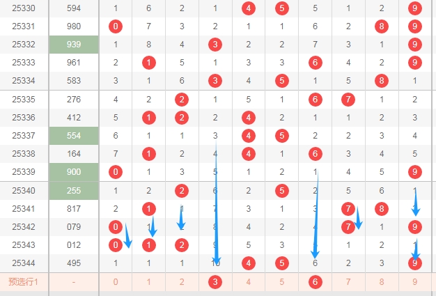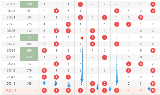大家好,本人蔡楚门,一个玩彩十几年的老彩民,现在来本平台分享一下本人的对彩票的分析思路和看法,希望本人的文章能够给你们带来灵感和好的运气,首先感谢一起彩提供一个好的平台,下面走势图都是用一起彩平台的走势图,接下来分析一下体彩排列三第2025345期的号码思路,下面多看看蓝色箭头和蓝色圈圈。