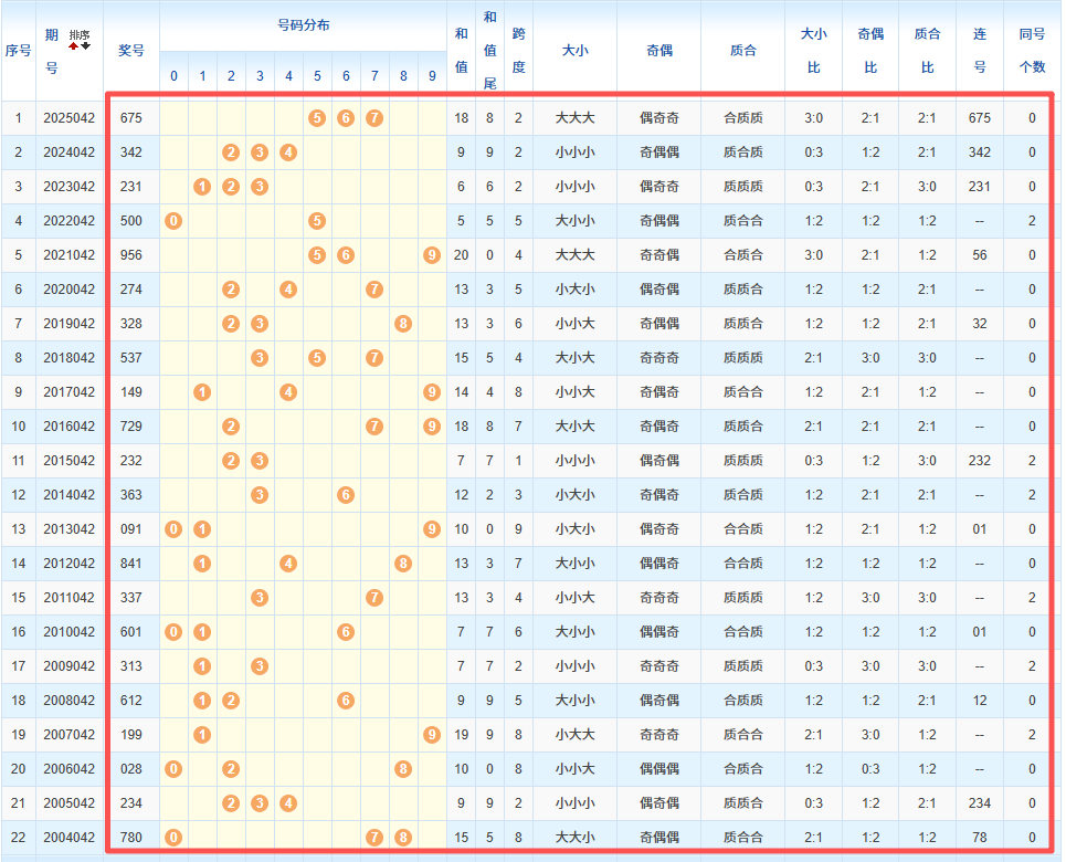 1、统计往年同期开奖号码