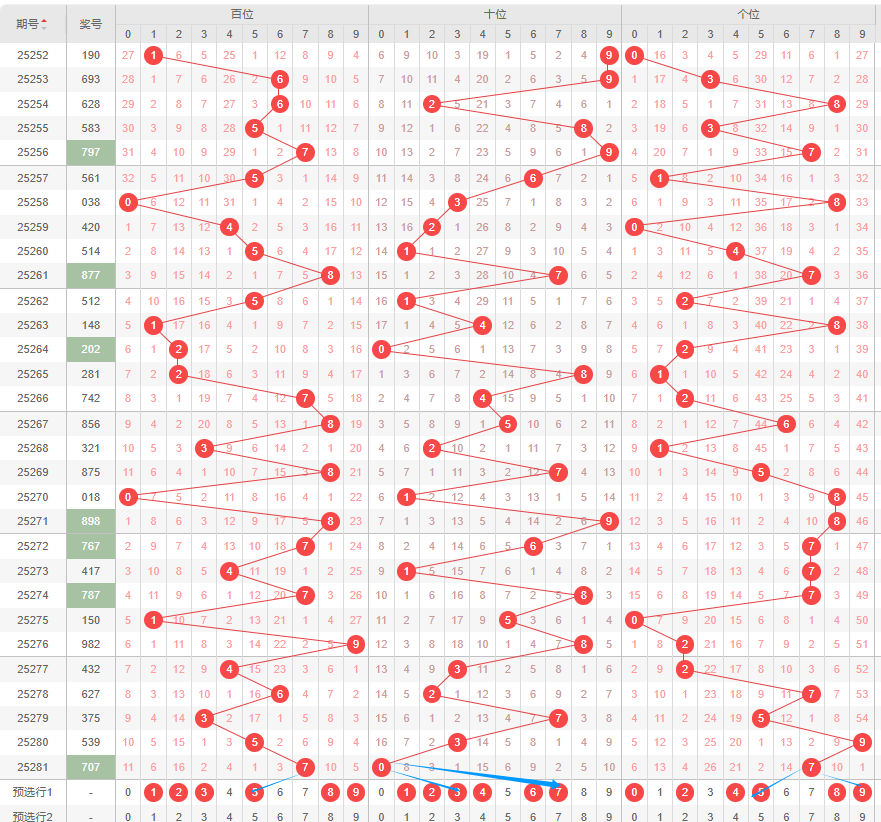百位:百位开号上期开出了7号球,本期开号走势看好往左开,看好1-2-3;从奇偶情况来看,已经连续3期开的都是奇数,本期看好偶数得回补,可以重点关注一下;从012路来看,上期开出了1路号码,本期看好开0路或者1路的号码;