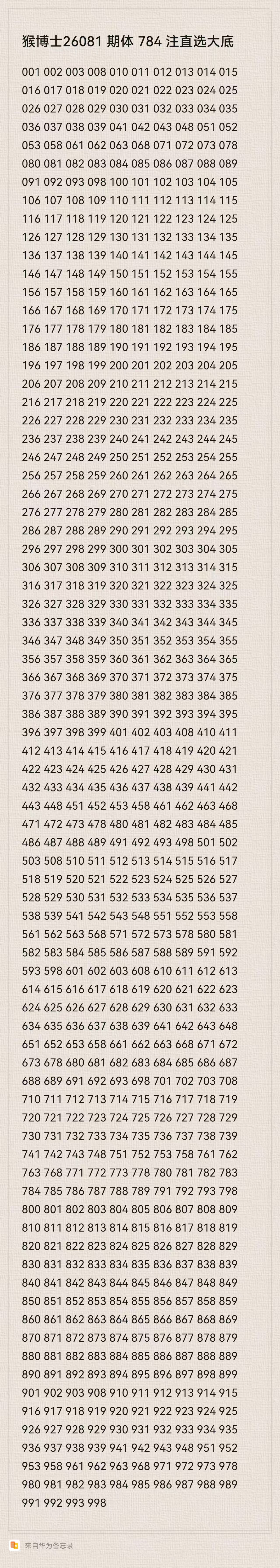 猴博士26081期排列三784注直选大底:(可以当母底用,然后进行缩水)