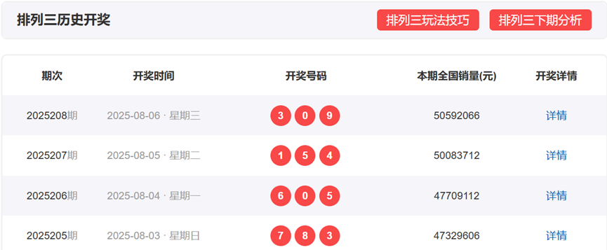 体彩排列3上一期,开奖号码为309,形态为组六 ,奇偶比为2:1,012路数值表现为000,和值12,和尾2,跨度9。