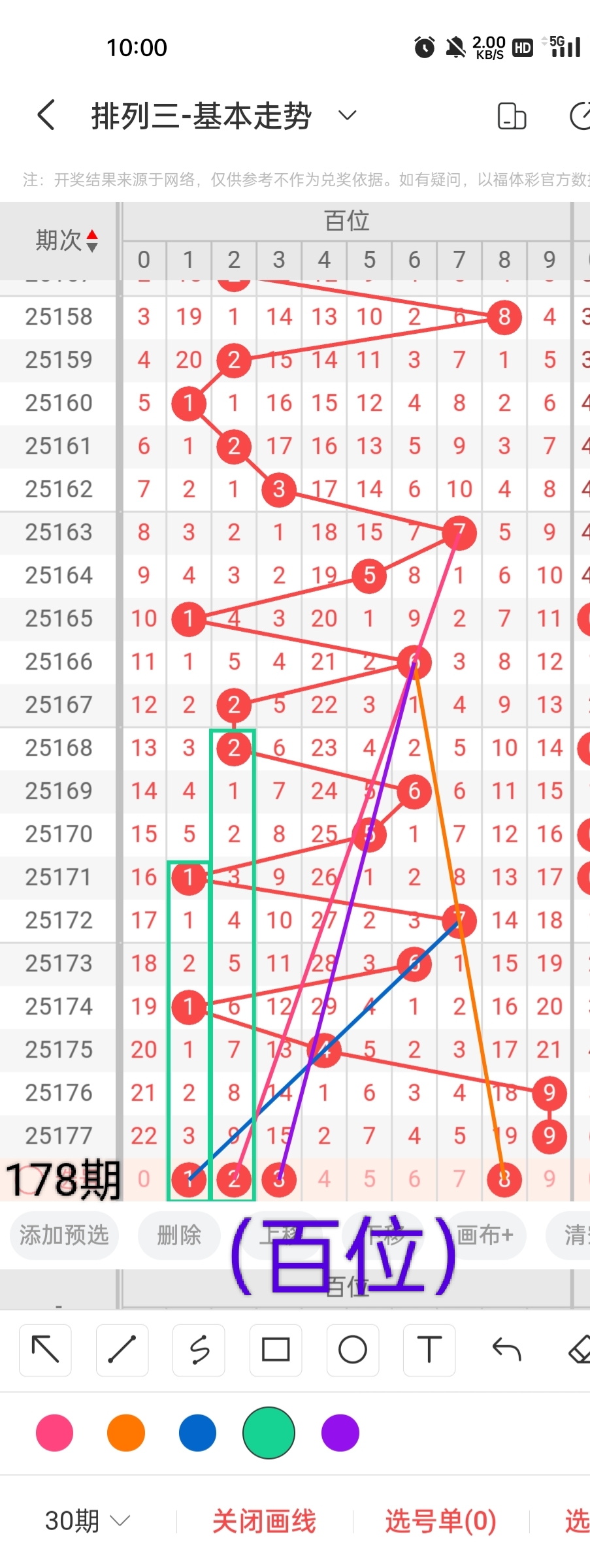 通过以上对上期的简单回顾,下面进入体彩排列三第2025178期(下面简称本期)的选号分析: