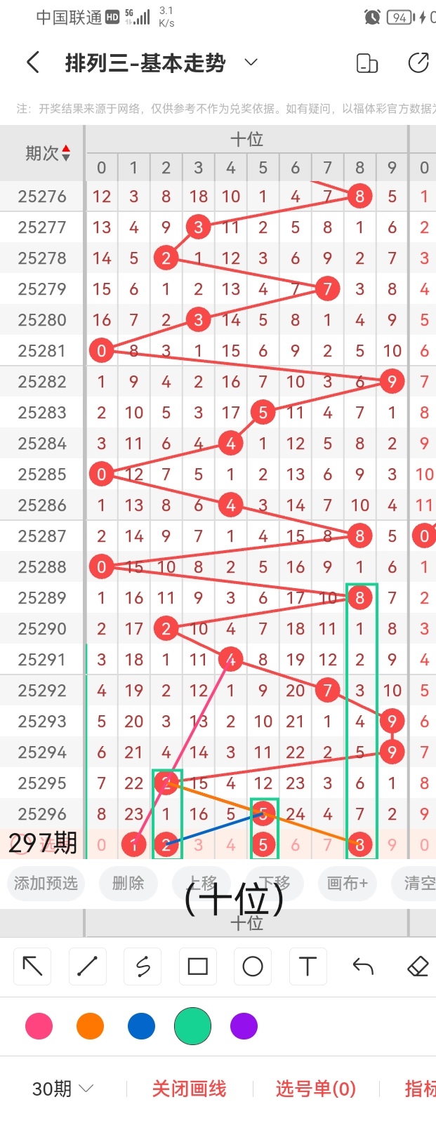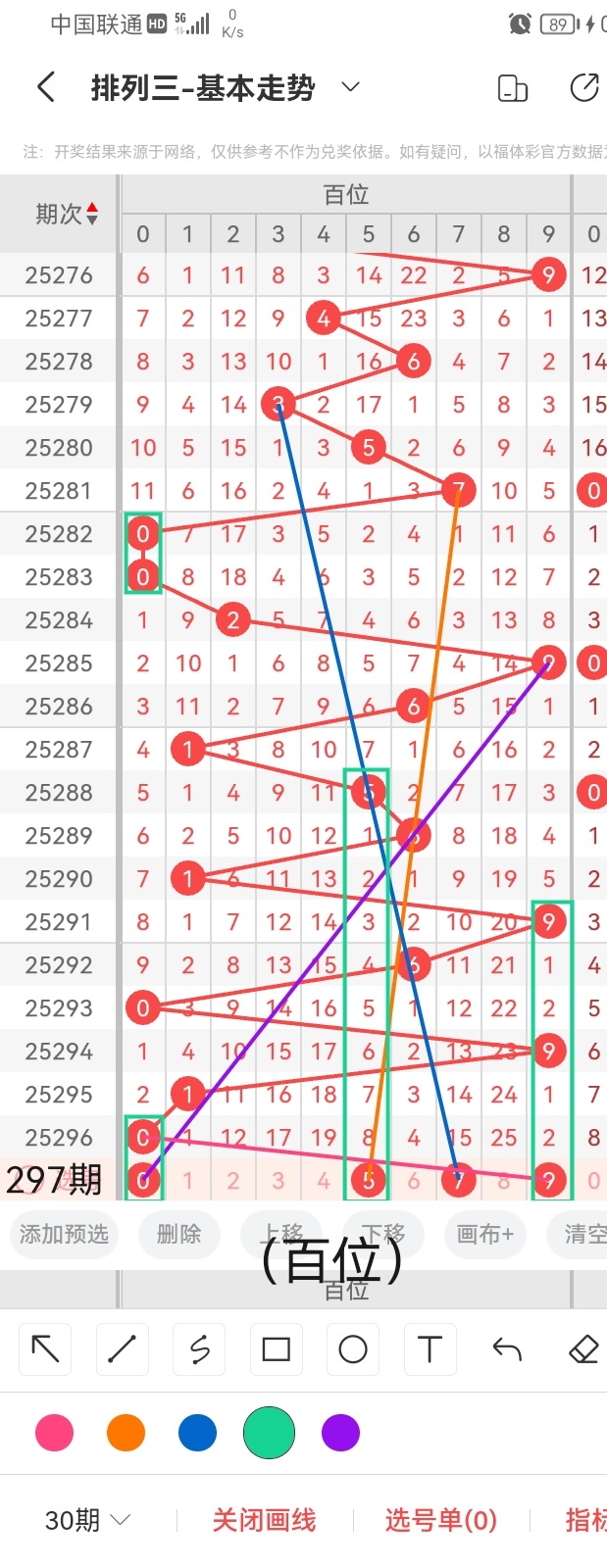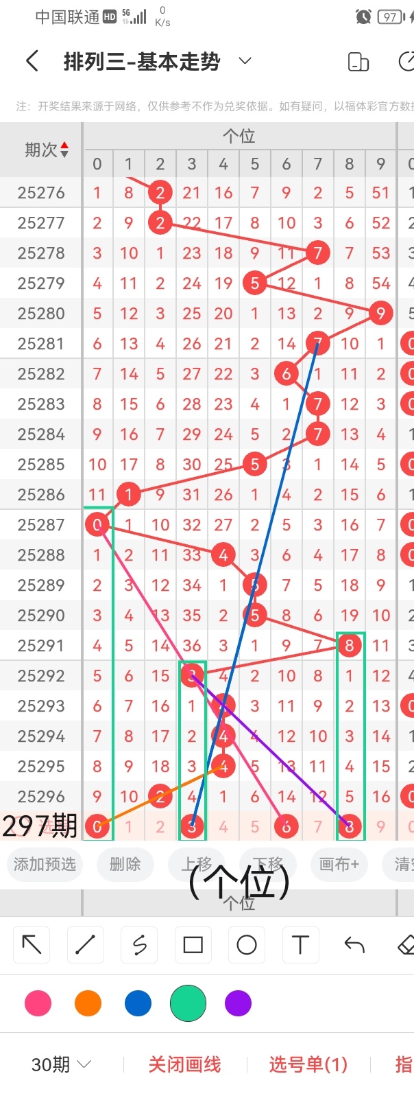 通过以上对上期的简单回顾,下面进入体彩排列三第2025297期(下面简称本期)的选号分析: