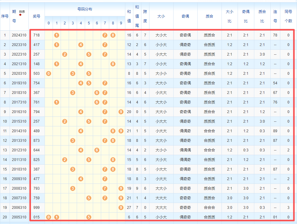 本文分别通过三个方面对本期排列三进行深度分析,这三个方面分别为:一:历史追随、二:往年同期数据、三:近期百十个遗漏值情况。