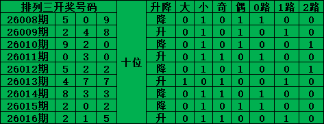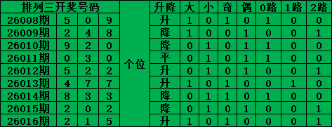 升降分析,上期是平参考上次开出数据降,本期选择升:3-9号。