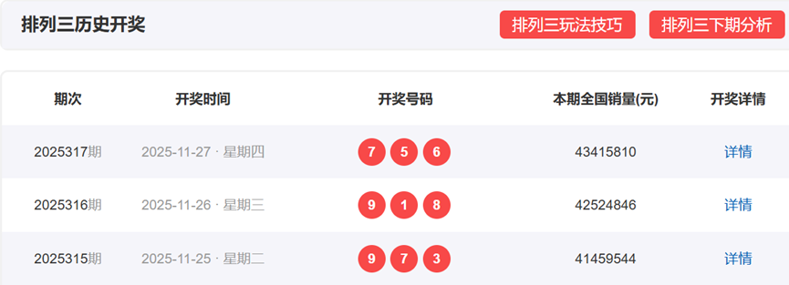 体彩排列3上一期,开奖号码为756,形态为组六,奇偶比为2:1,012路数值表现为120,和值18,和尾8,跨度2。