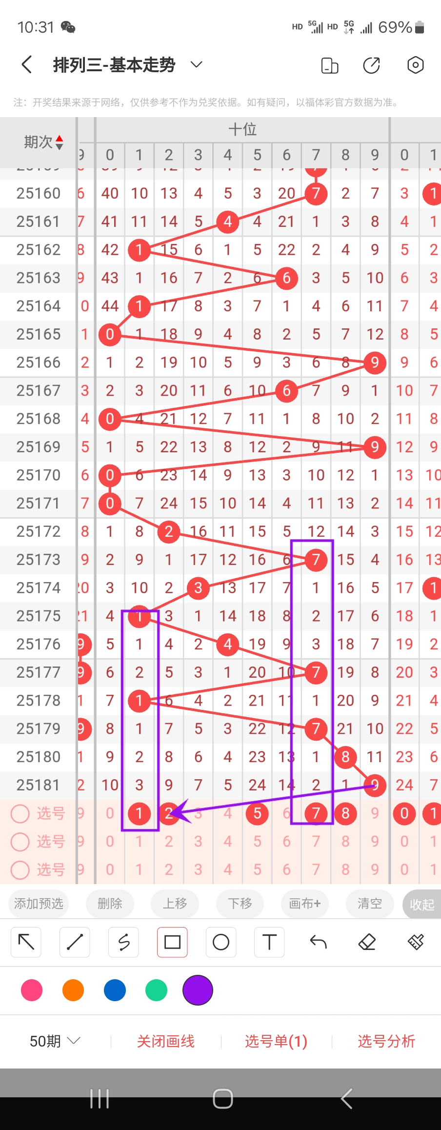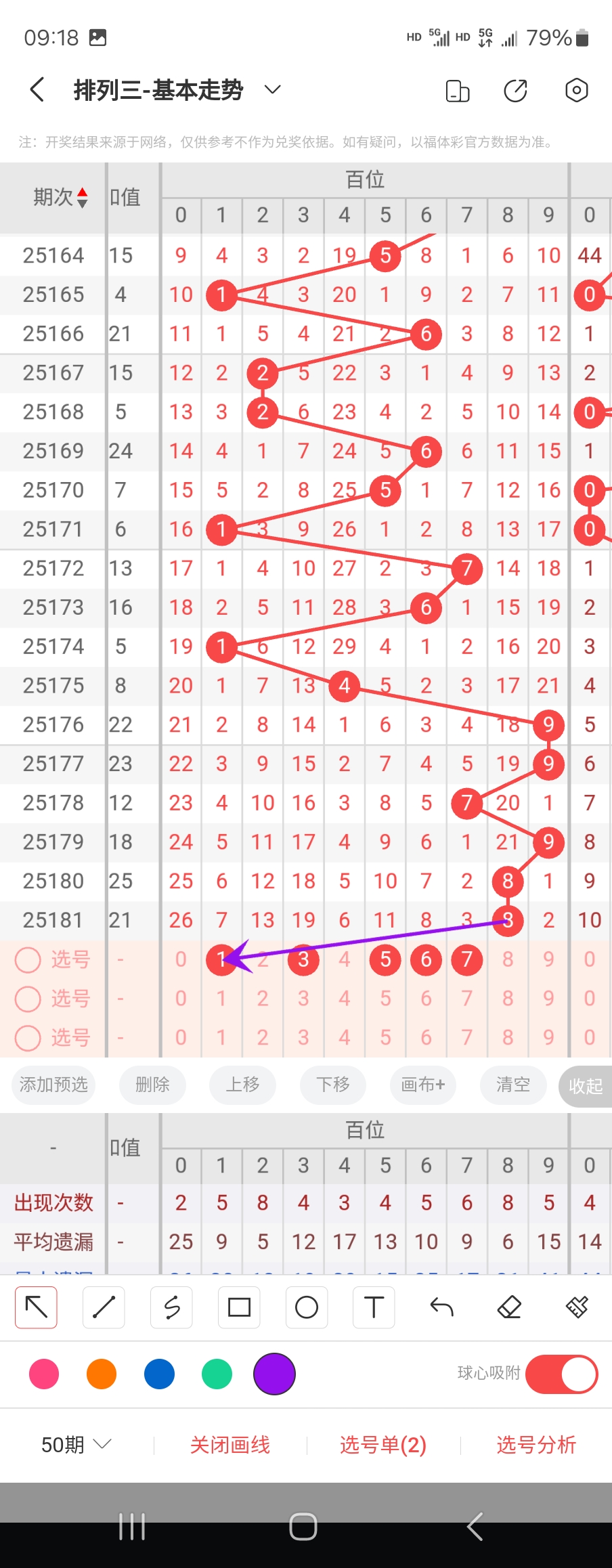 个位走势标注如下图;