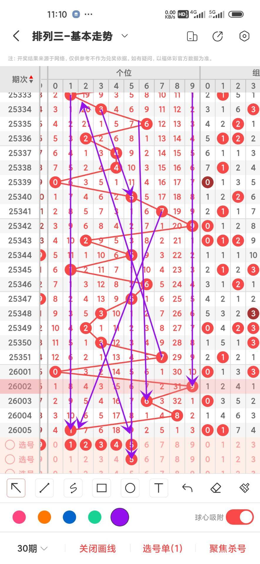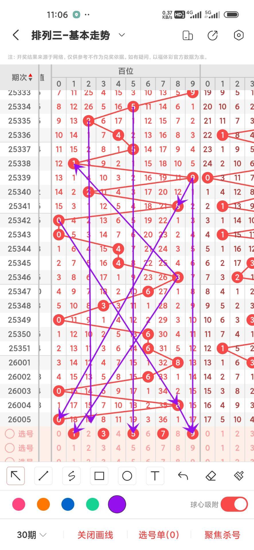 2026006期上期百位开出偶数0,我们通过走势图来看100期内,012路中平均遗漏的数据,0路号码的平均遗漏总数是127次,0369分别在100期内平均遗漏分别是8,21,9,9,这几路号码3平均遗漏最大21次,我们再来看1路号码平均遗漏总数是36,147号码分别遗漏是,8,12,16,这三者之间7平均遗漏最大16次,再回过头来看2路号最大遗漏总数是31次,258号码分别遗漏是17,7,7次,这三个数之间2平均遗漏最大17次,在来看百位上奇偶下号,目前奇数出现的次数是45次,偶数目前出现55次,目前两者之间差别不大,百位目前偶数依然热度很高,今天继续防守冷号和小号,通过上面的走势分析我们可以看出目前小号开始回补,124579号码走势就有点冷淡,今天百位我们重点关注13579,具体看下面走势图