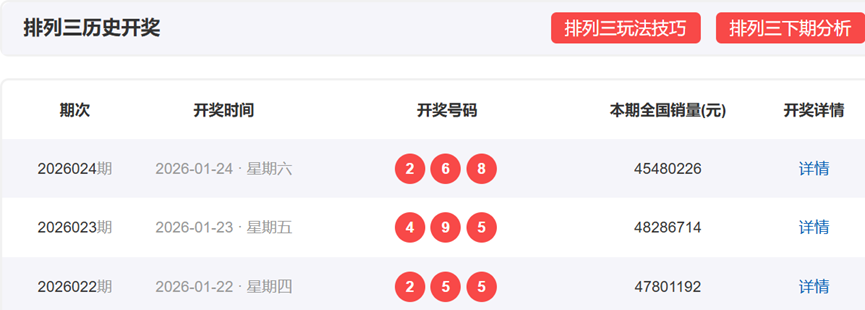 体彩排列3上一期,开奖号码为268,形态为组六,奇偶比为0:3,012路数值表现为202,和值16,和尾6,跨度6。