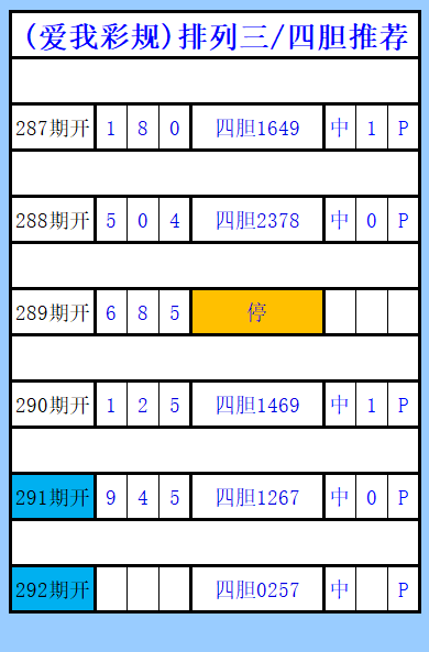排列三第292期图文(爱我彩规),四胆推荐