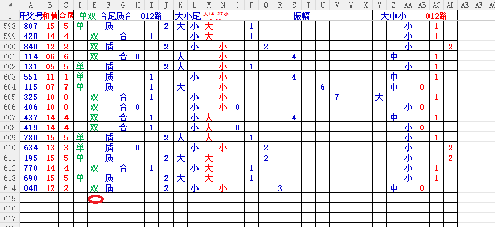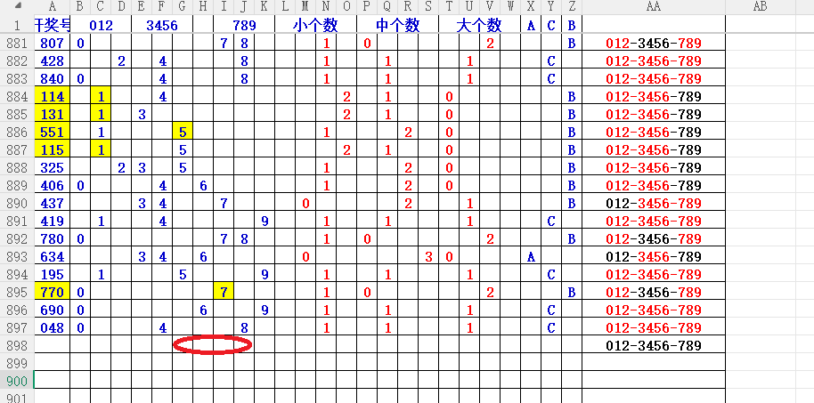 如上图2,012路分析01路尾走比较好,关注3456尾;
