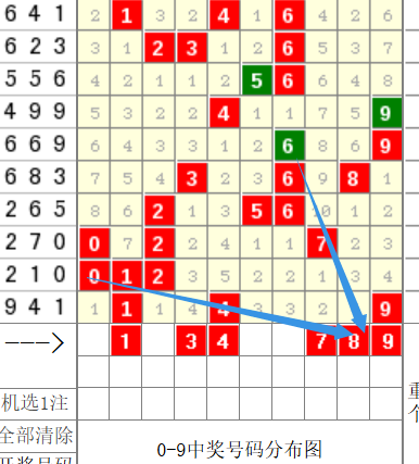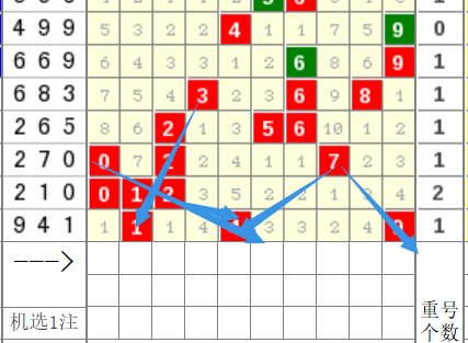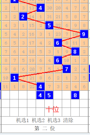 接下来我们再看一下这个,十位上期我们分析的也是对的,这个1的话是要往右进行运动的,走到这个4号,那么这个4本期的话。嗯,它是有重,还有这个走近跨的这样的一个可能。然后远跨的话,就只能走到八,也就是说,十位的话只有4.5.8啊,比较比较合适
