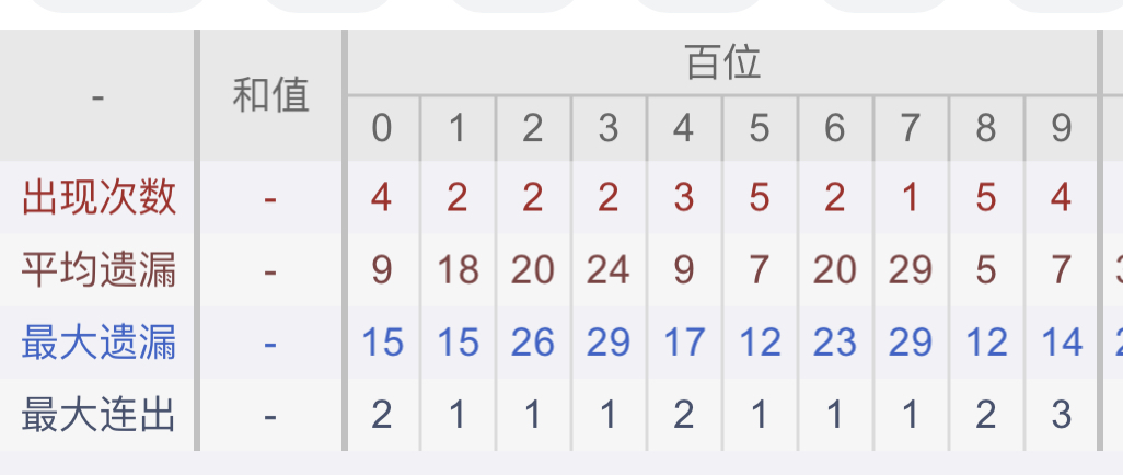 从近30期数据我们可以看出百位1是热码,这个冷热码数据我们结合之后的分析再利用它