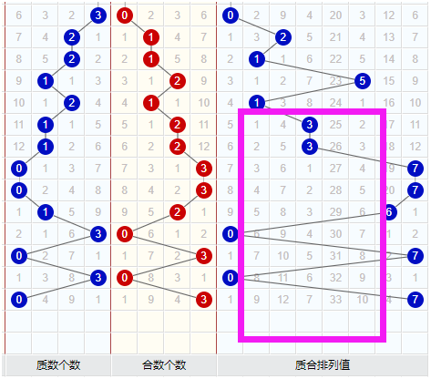 此时我们在细看质合的出号码情况,看到质数个数字以及合数个数的走势图表。