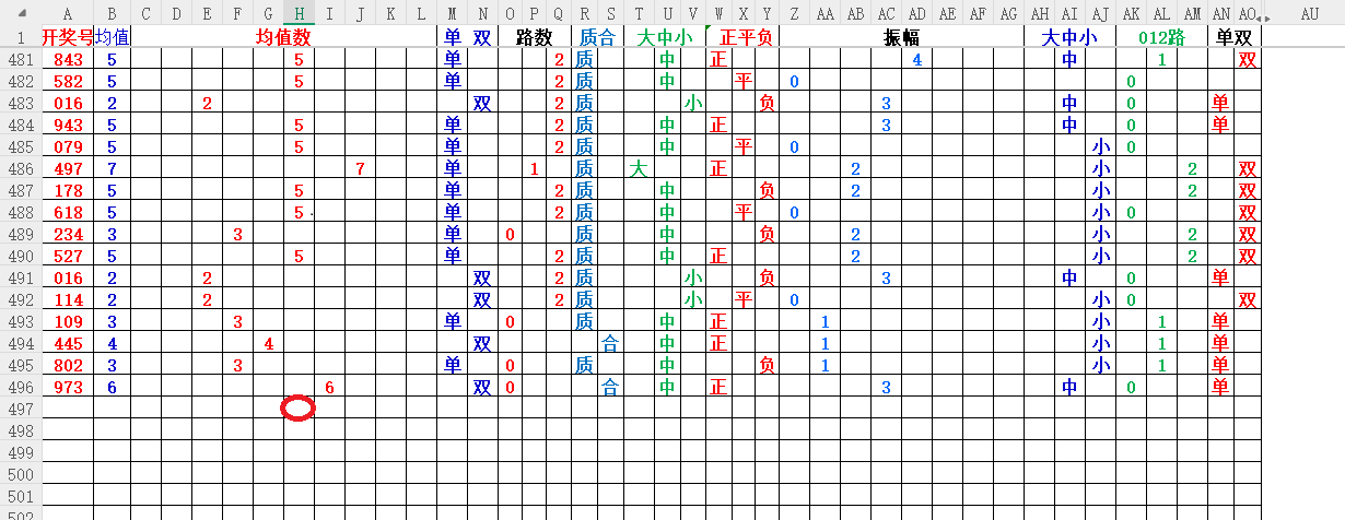 如上图1,大中小分析,均值小中大数比较好,也就是 3456 均值最好,重点:45。