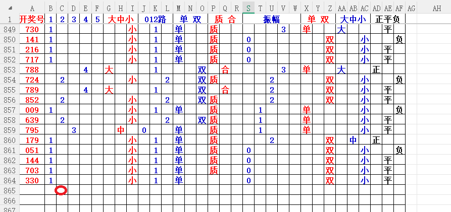 如上图2,大中小分析来看,中小数尾3456尾,可以考虑定345尾。