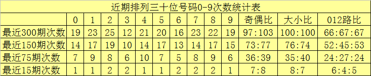 百位分析:最近300期奖号由冷到热表现为:021,324,427,529,630,931,2832,735,139次,奖号奇偶比为158:142,大小比为157143012路比为106:101:93