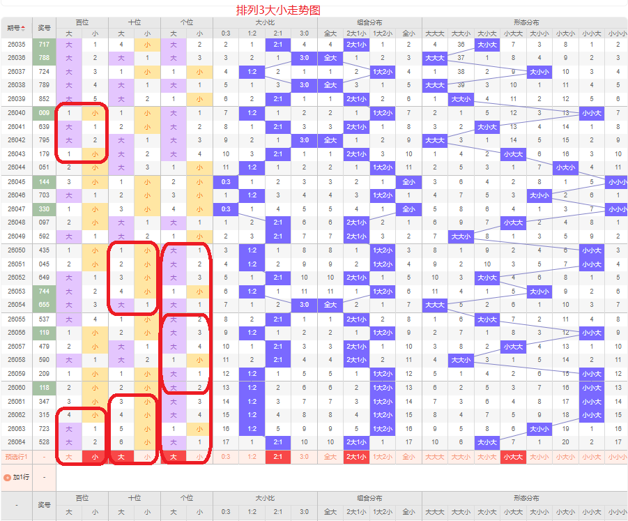个位近三期是偶数的小号码,侧重奇数的号码,侧重大号码,侧重0路和2路的号码,侧重号码269。