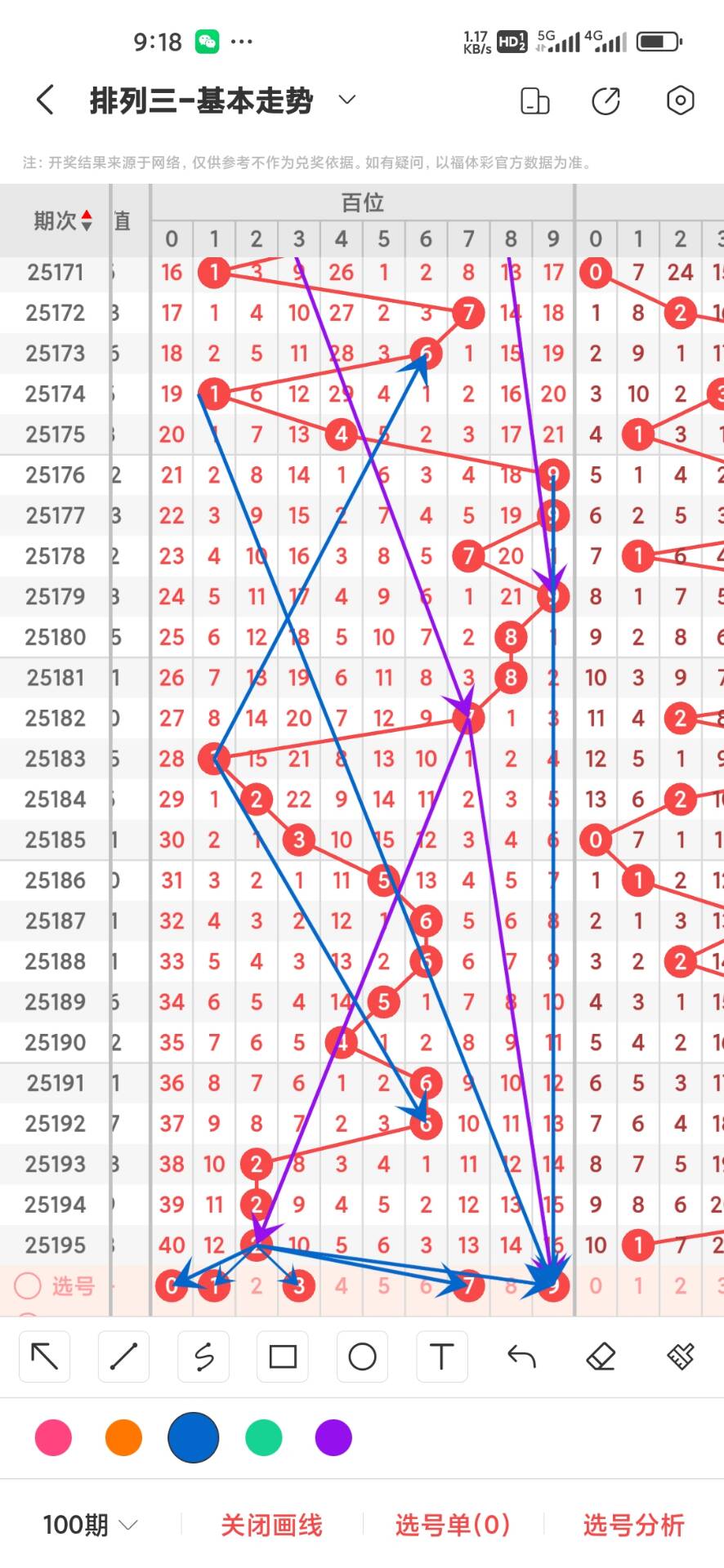 25196期,上期百位看出偶数2,从100期的走势图中012路目前出现0路出现32次,1路出现31次,2路出现37次,三路目前在均衡状态差别不大,在从奇偶比方面来看奇数目前出现47次,偶数出现53次,两者之间差别不大我们在从大小比方面来看大号出现40次,小号出现60次,大小方面小号处于热号走势比较好,在通过走势图我们可以看出01789目前遗漏大,0遗漏最大,2456目前形态比较好,重点关注小号热号,防大号冷号回补,具体看下面走势