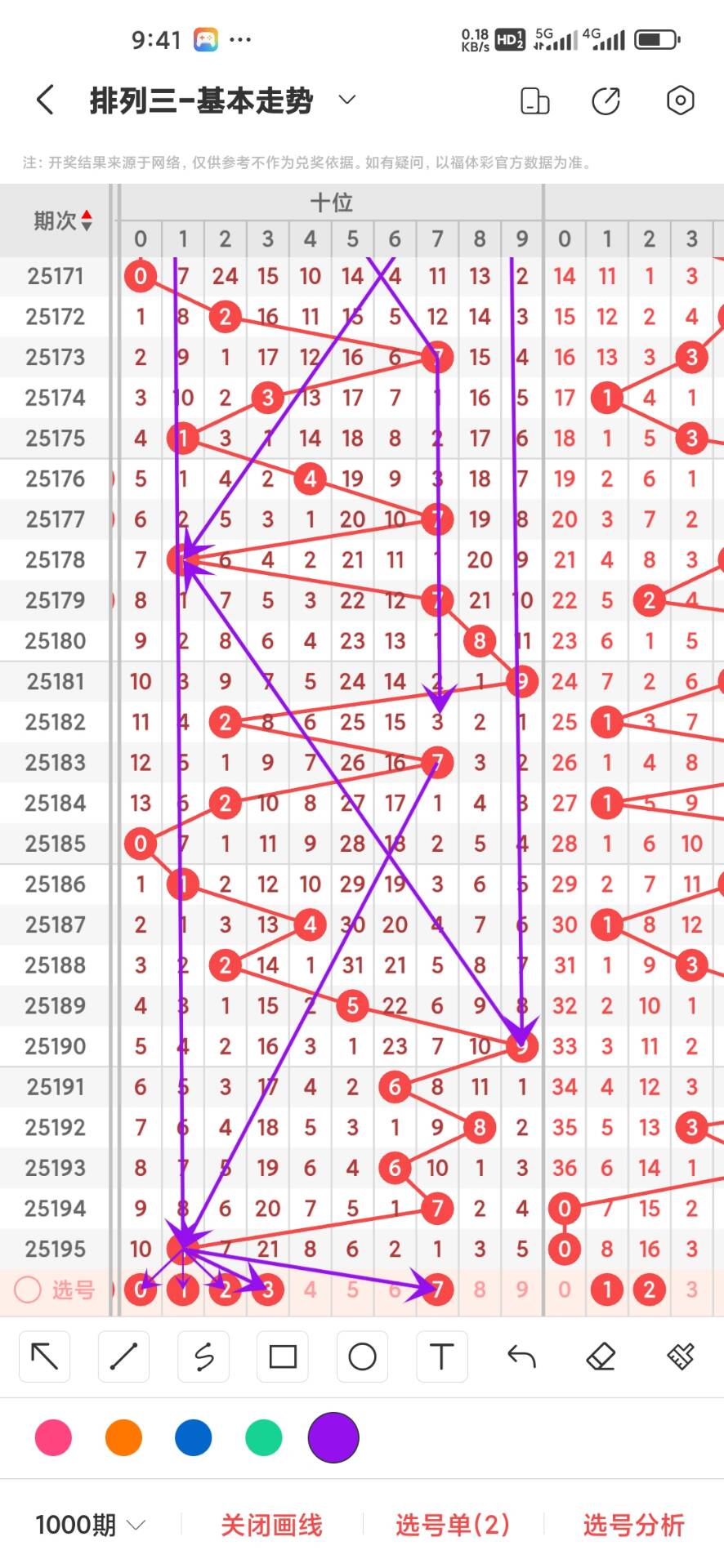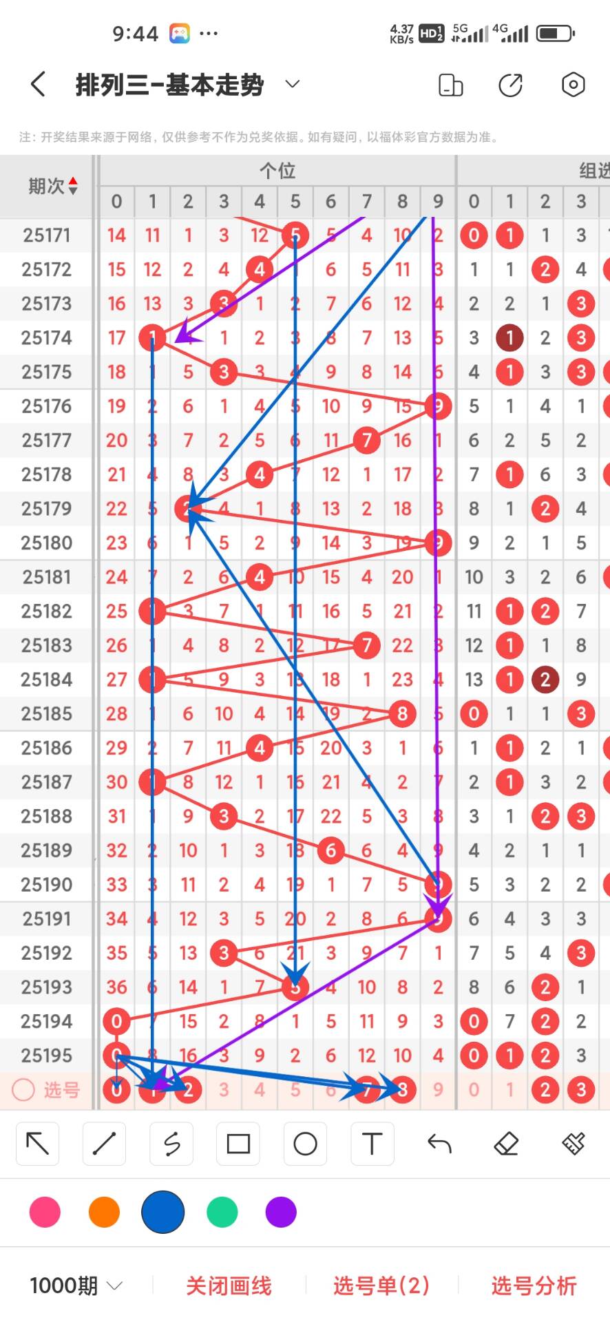 25196期,上期个位开出偶数0,从100期的走势来看012路目前0路出现39次,1路出现37次,2路出现24次,可以看出2路比较冷淡,01路比较稳定形态比较好,我们在从奇偶比来看目前奇数出现53次,偶数出现47次,两者之间差别不大,在从大小比来看目前大号出现39次,小号出现61次,可以看出小号走势形态比较好,通过走势图来看目前278遗漏有点大,01349形态比较好,重点关注小号热号,防大号冷号回补,具体请看下面走势图