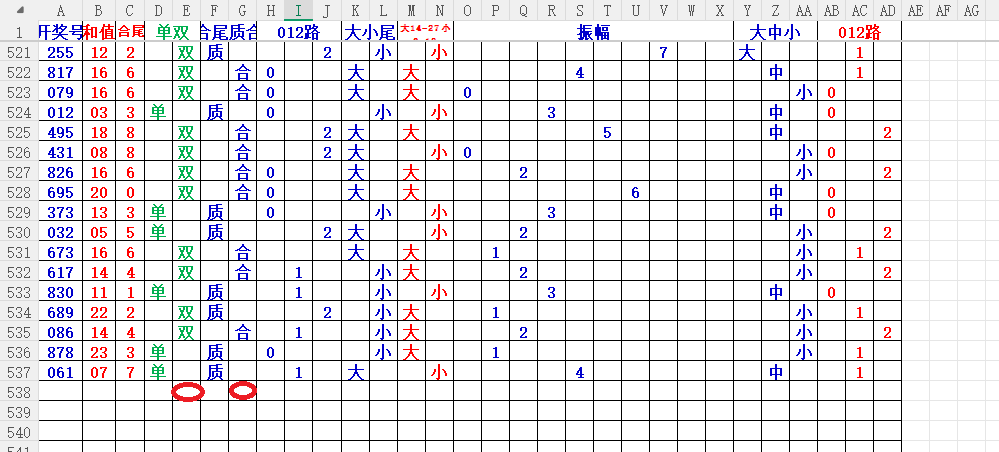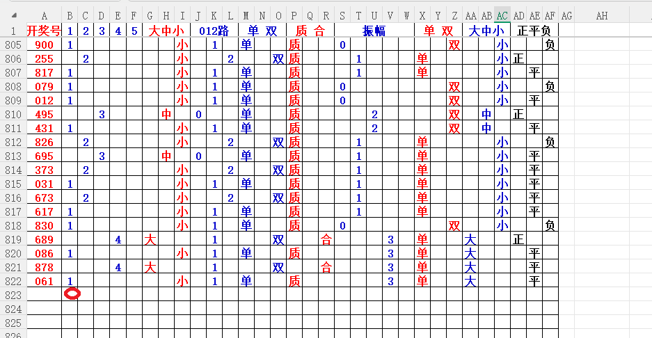 如上图7,012路分析-1路出号的概率还是很大,本期可以从1路号入手4代表78