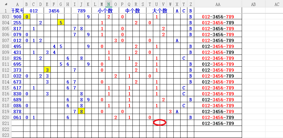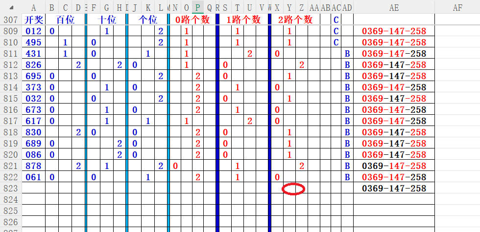 如上图56,012路分析0路出号的概率还是很大,本期可以0路号入手做胆0369中选;看好369胆码