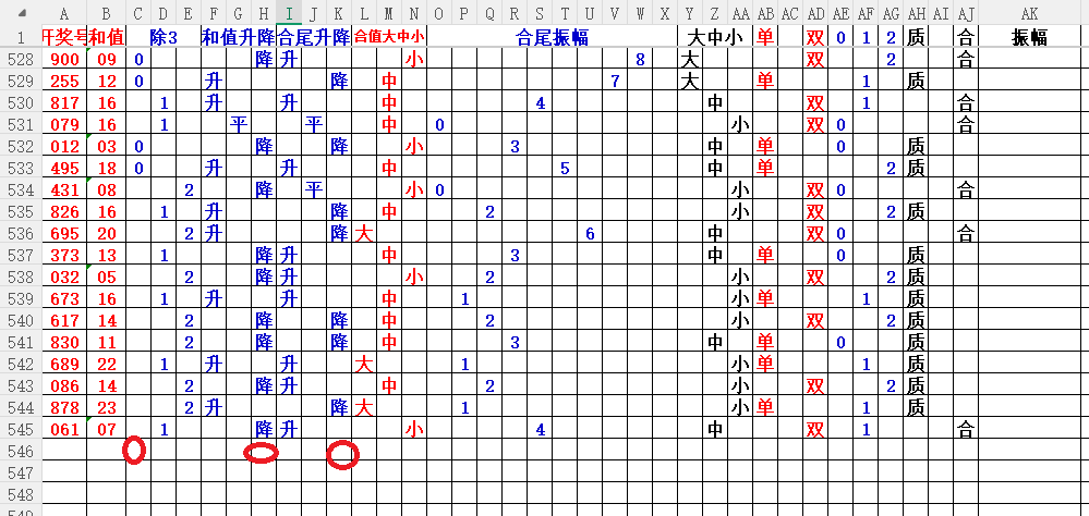 如上图3,和值升平降分析,和值降的概率大,大于07和值。