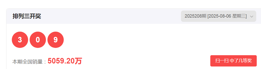 (一)体彩排三第2025208期开奖号码