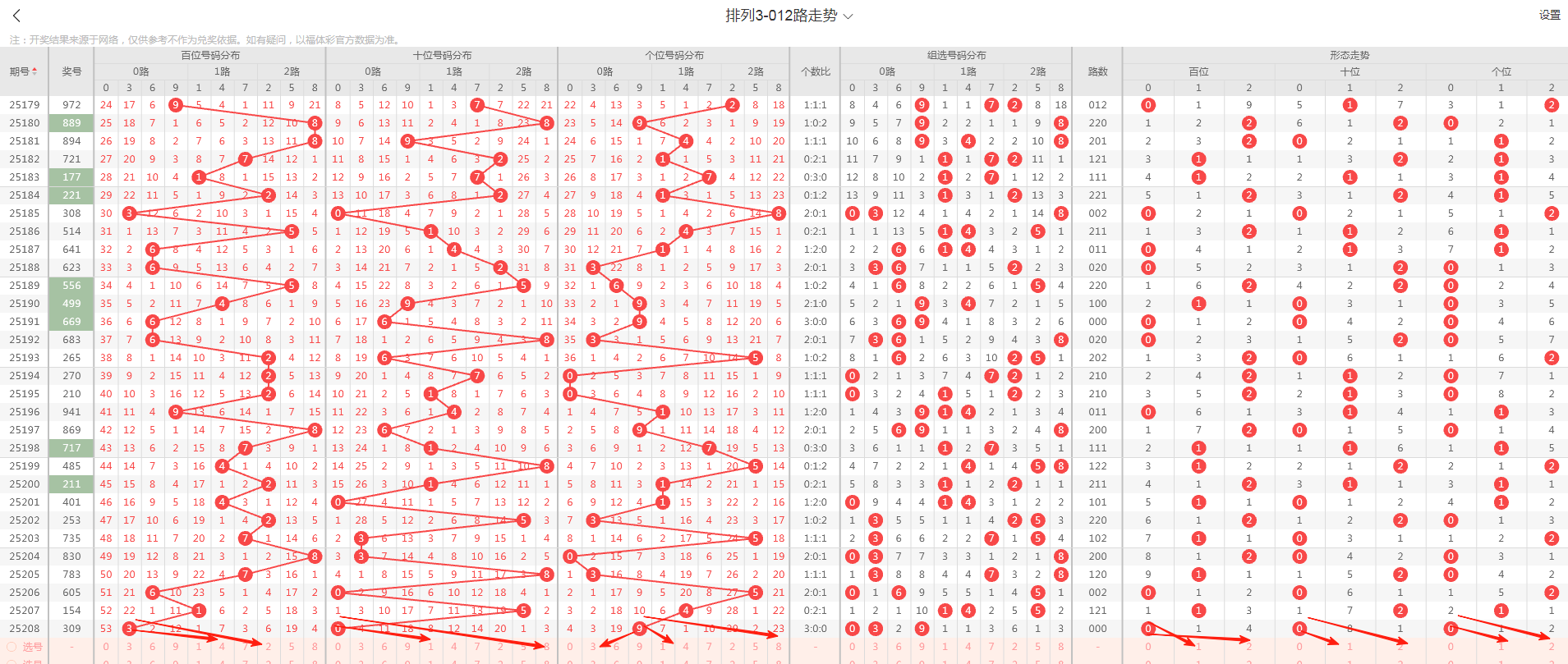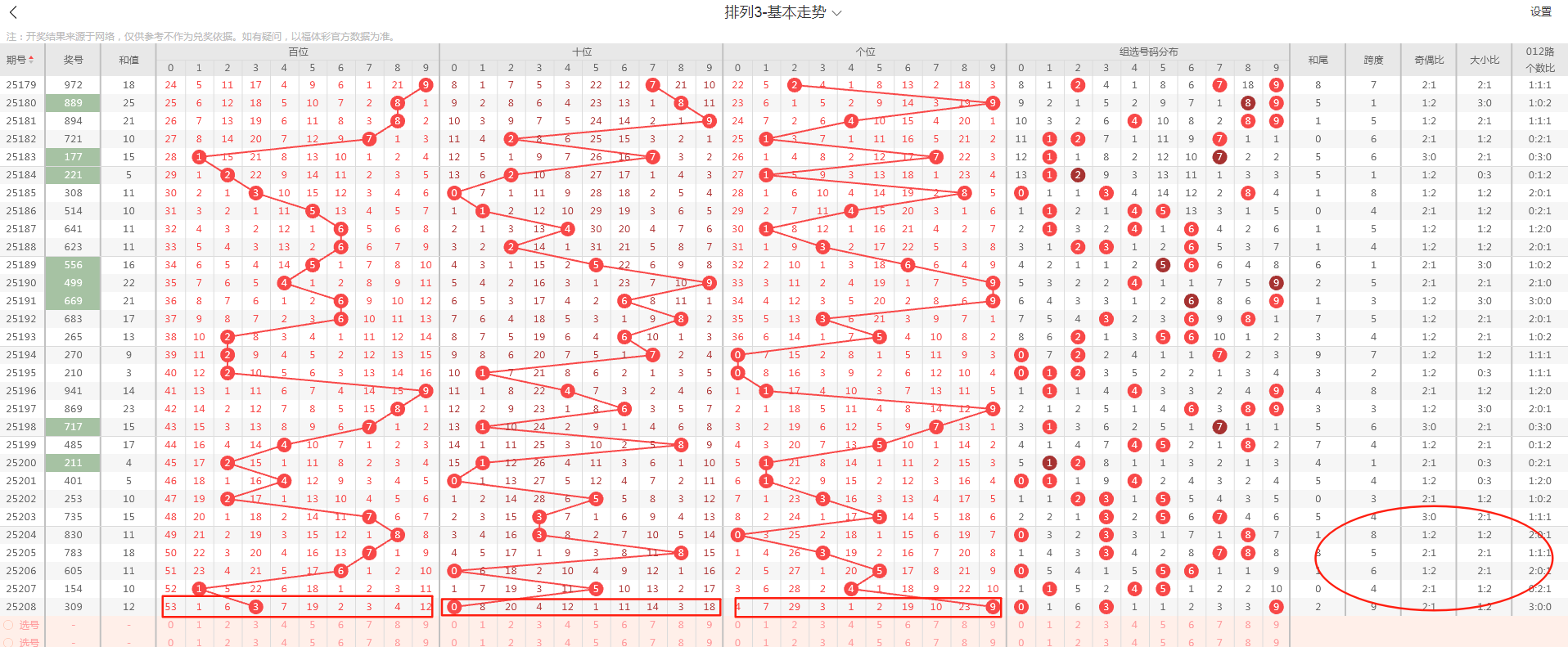 (二)体彩排三第2025208期基本数据汇总