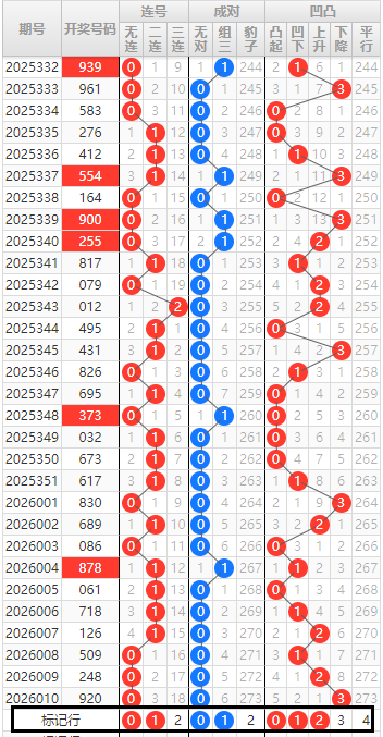 通过走势图可以看出近30期连号成对凹凸走势变化
