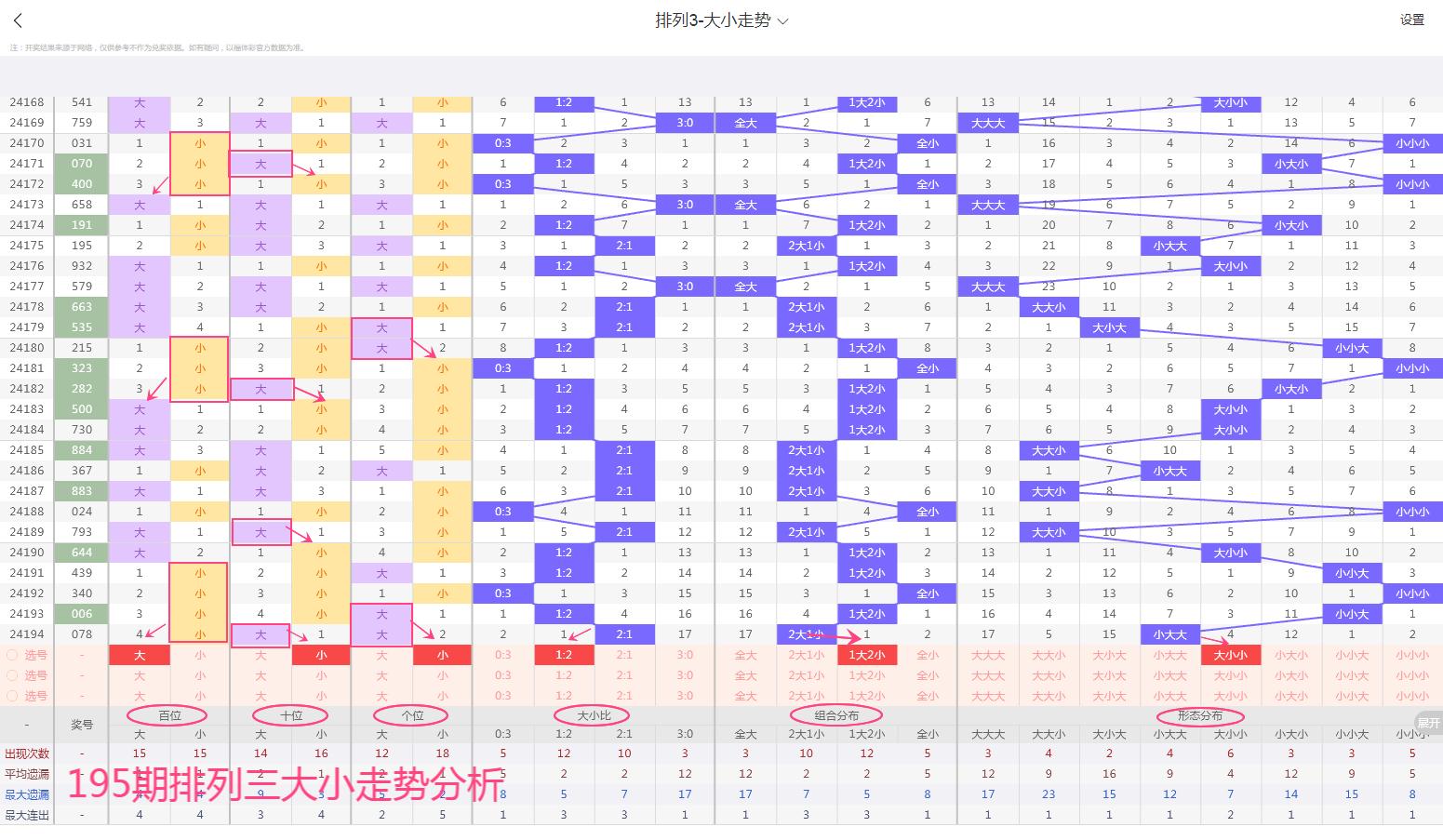 大小走势,30期内大小出现次数比例15比15,最大遗漏数据比例4比4,最大连出数据比例4比4,平均遗漏数据比例1比1,近期小走势4期出现,数据分析,大走势将连续出现。