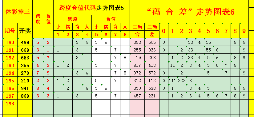 (6),根据开奖号码、二码合、二码差的数字特征,构建一个的综合走势图见表6;