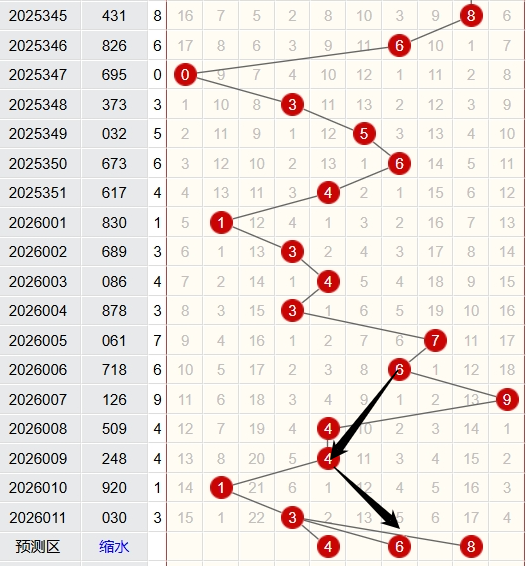 上期和尾为3,近5期和尾开出情况:第26007期开出9,属于奇数,0路号码,金属性;第26008期开出4,属于偶数,1路号码,金属性;第26009期开出3,属于奇数,0路号码,木属性;第26010期开出1,属于奇数,1路号码,水属性;第26011期开出3,属于奇数,0路号码,木属性;