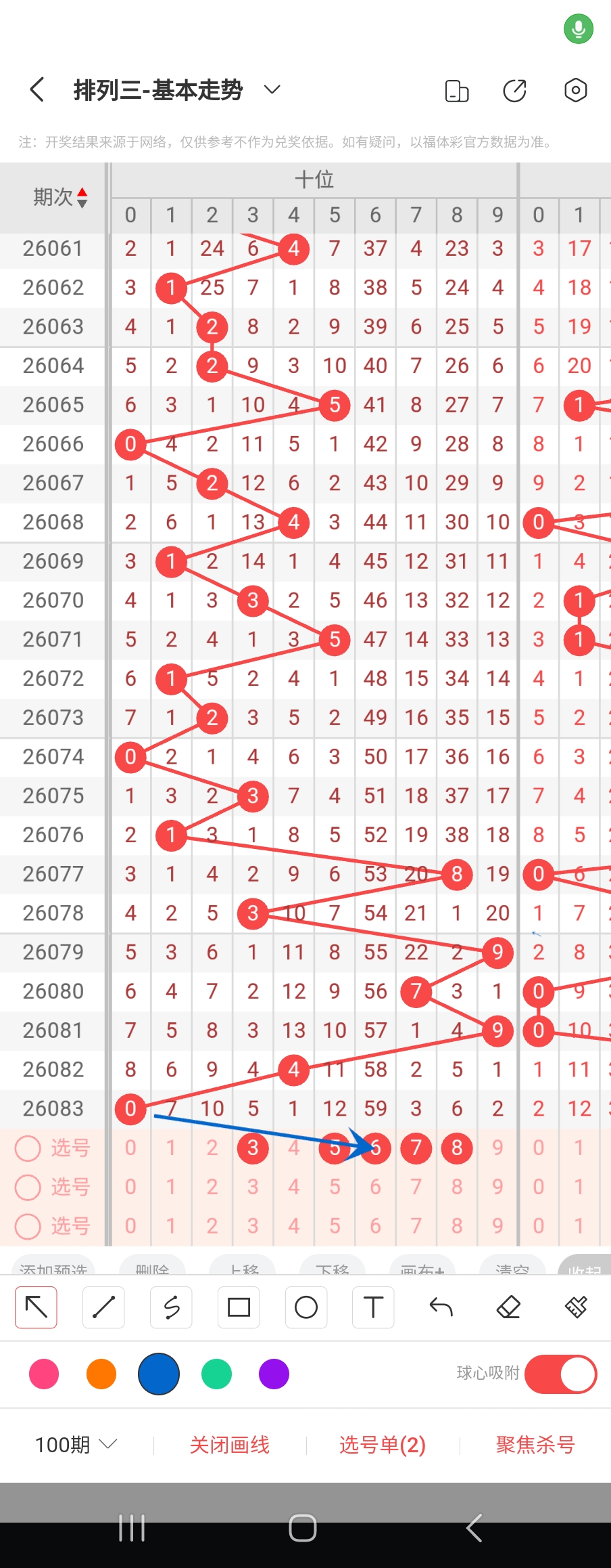 个位走势标注如下图;